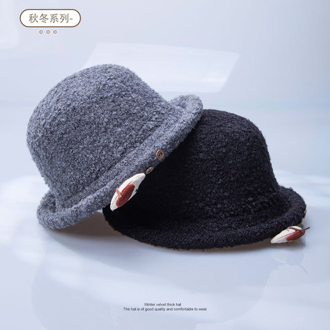 Chapéu De Veludo Feminino Inverno New Plain Maquiagem Balde Chapéu De Pescador Versão Coreana Do Rosto Pequeno Tampa Do Rosto Retro Pot Hat