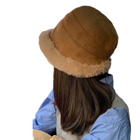 Inverno peludo chapéu encaracolado do mulheres Rimmed estilo pescador com orelha quente proteção veludo redondo camurça bacia chapéu para desgaste da praia