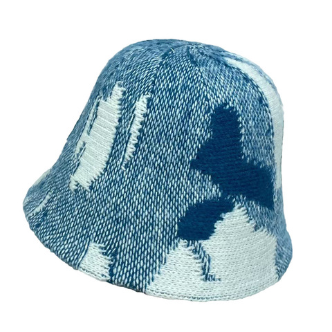 Versão coreana Inverno Malha Chapéu do Pescador para As Mulheres Rolled Edge Bowler com Cão de Ouro Bonito para Pesca e Esqui